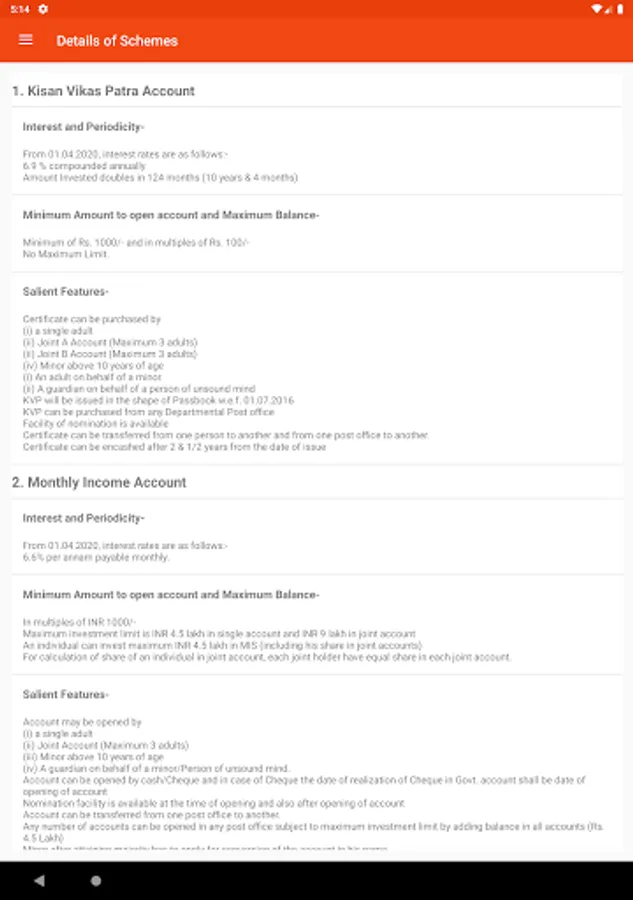 "Post Office Schemes Calculator" is an application which provides information about saving scheme of the Indian post office. application include NSC, Kisan Vikas Patra, Time deposit and Monthly Income Account calculator, Schemes Details etc.