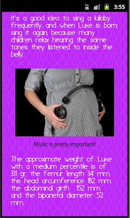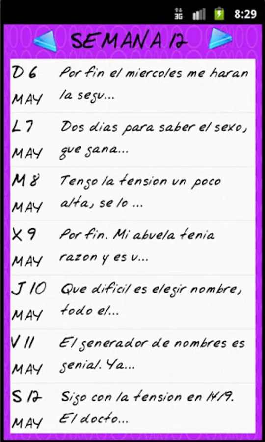 Pregnancy-app is the most complete app for your pregnancy. You'll enjoy many tools as the name generator, the weight control, the weight chart and the creation of a web and photo diary. Besides, you'll be able to read every week about what it's happening inside your belly, and the charts that will help you to see if everything is going OK.