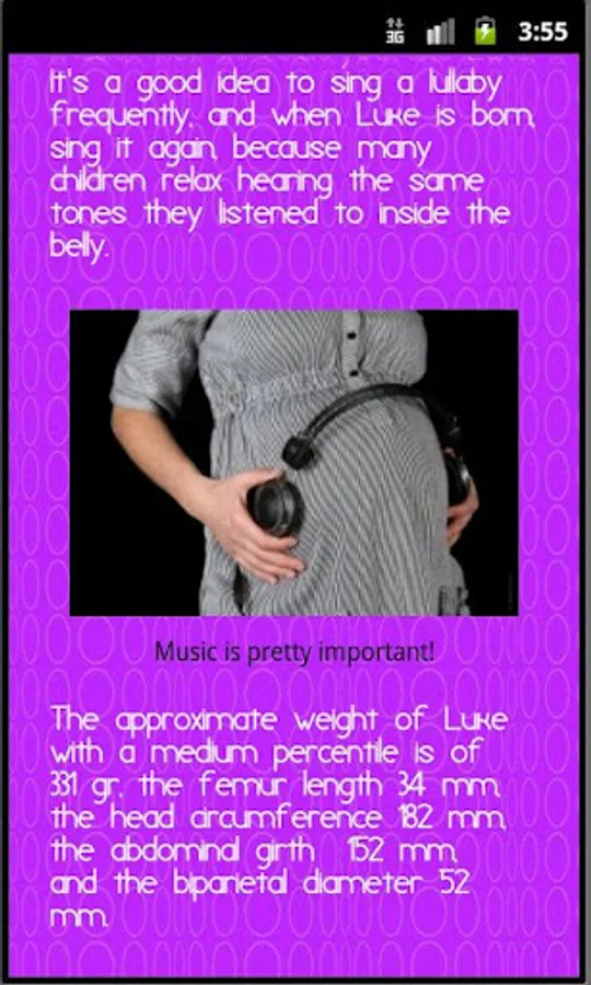 Pregnancy-app LITE is the most complete app for your pregnancy. You'll enjoy many tools as the name generator, the weight control, the weight chart and the creation of a web and photo diary. Besides, you'll be able to read every week about what it's happening inside your belly, and the charts that will help you to see if everything is going OK.