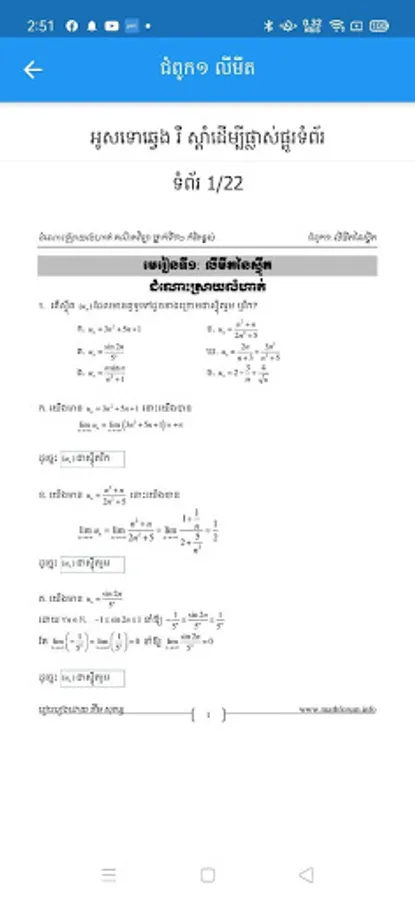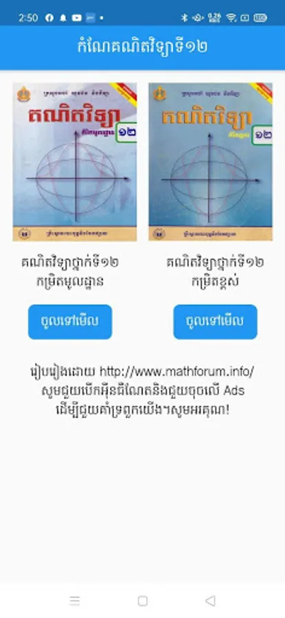 កំណែគណិតវិទ្យាថ្នាក់ទី១២ ភាគ១ន Screenshots