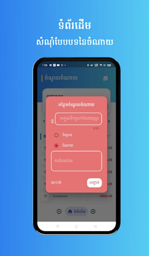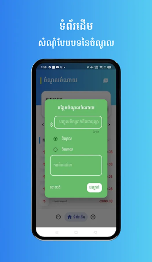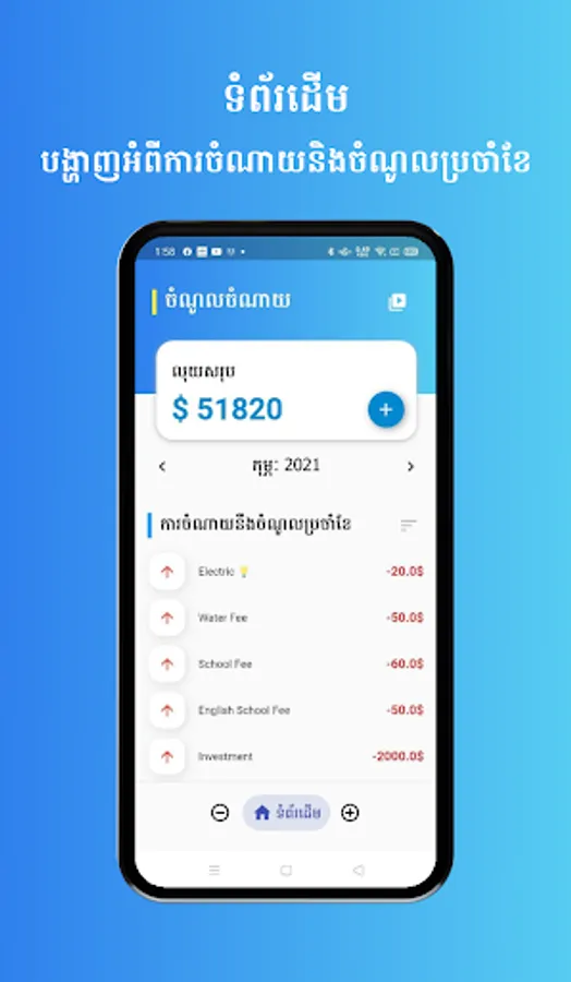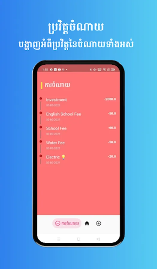 Khmer Money Manager is a platform for tracking your personal income and expense. Enjoy with the features list down below ==>