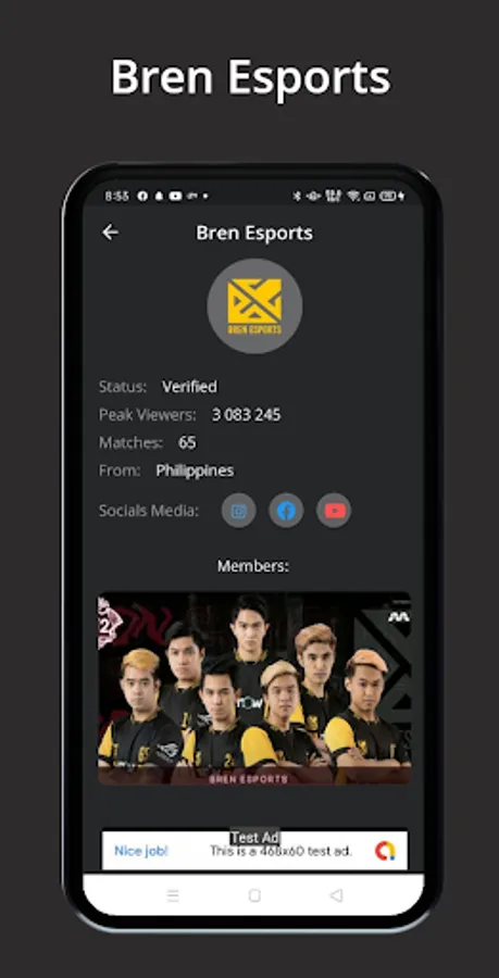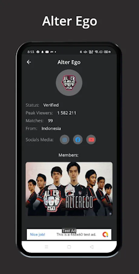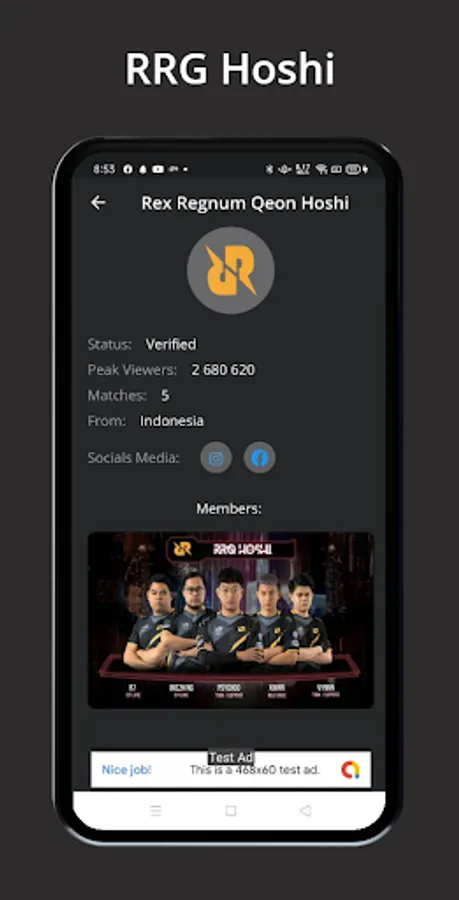 This app will show user about moba game e-sports team for global. The app will provide such as where team from, team logo , name, peak viewers, matches, socials media link to each e-sports team.