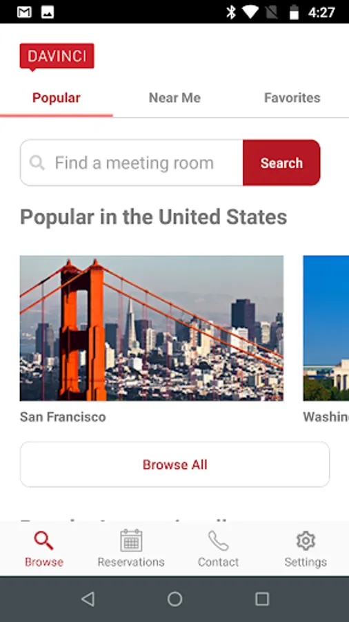DavinciMeetingRooms.com allows you to browse and reserve conference rooms, day offices and a variety of tailored business services in real-time, receive instant confirmations and manage reservation details online or via mobile.