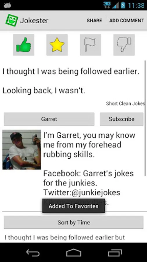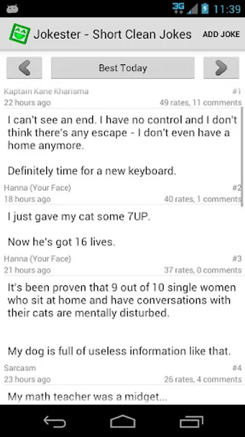 •Favorite jokes to view later and ability to view jokes you commented on and rated