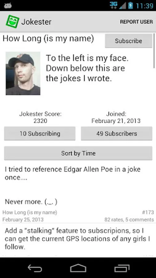 •Subscribe to the jokesters you like and view their jokes in the Subscriptions section