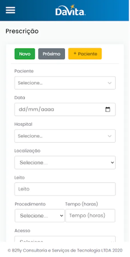 Application for managing the in-hospital hemodialysis sessions of DAVITA BRASIL. In it Doctors, Nurses and Nursing Technicians will make the complete management of sessions held throughout BRAZIL