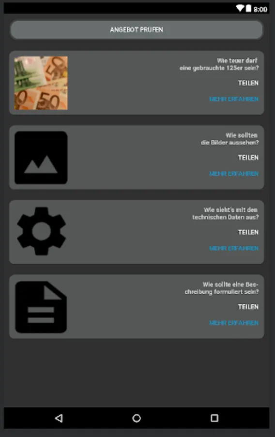 - Offer review of listings / offers on mobile.de or AutoScout24. Quotations are based on a questionnaire on various categories, such as Professionalism checked.