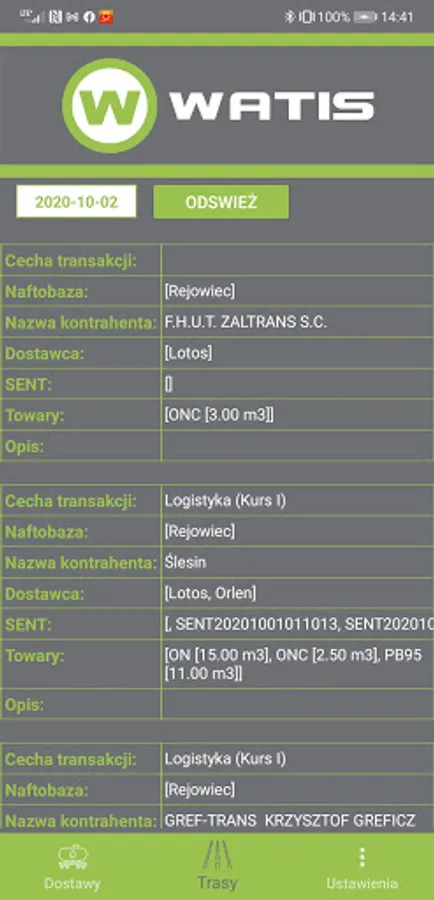 WATIS Mobilne Dostawy is an application supporting the process of fuel deliveries for the company's own stations and customers. WATIS Mobilne Dostawy is an application dedicated to company drivers and rented transport, which enables online transfer of orders and execution from the company's headquarters. The application is also integrated with Google Maps.