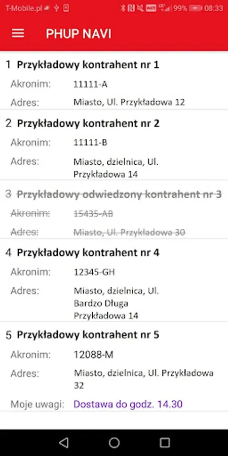 * LIST OF CONTRACTORS - The list of all contractors is a convenient way to check how many contractors should be visited, where we have already delivered, contractors' addresses and possible comments.