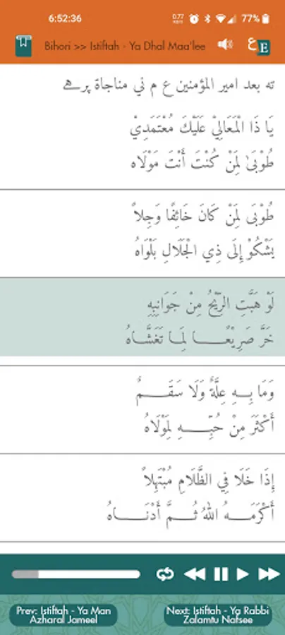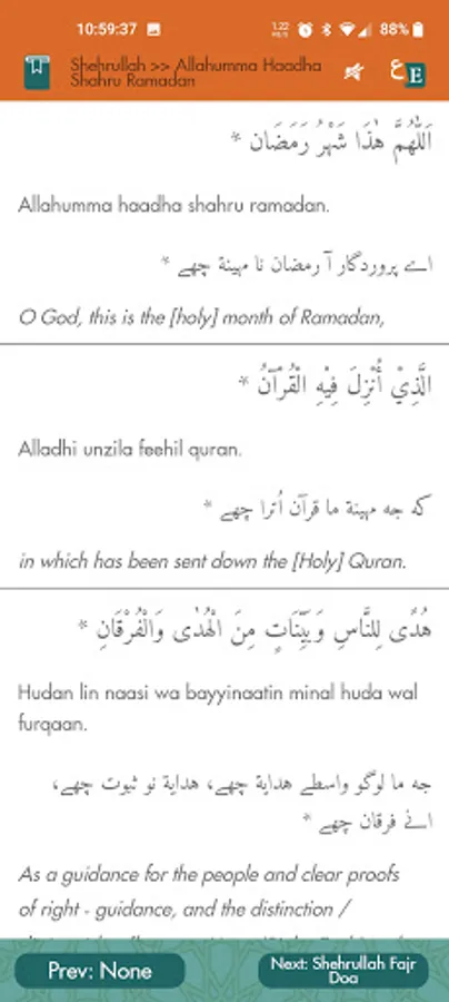 • Doa Library : with phonetics (transliteration), and Dawat ni Zaban & English translations along with audio playback. Doas include: Wuzu, Namaaz, Hafti, Fajr, Shehrullah, Bihori, Marsiya, and others.