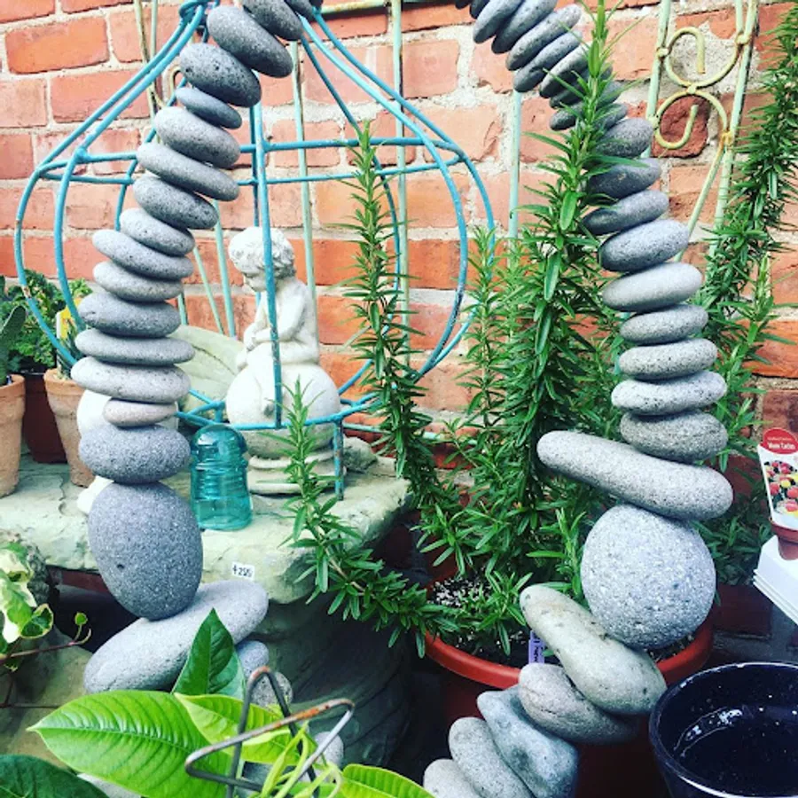 Stone Sculptures and Art: Add a unique focal point to your garden with stone sculptures or art pieces. These can be carved stones, stacked stone structures, or even pebble mosaics. They can serve as eye-catching centerpieces or hidden gems tucked away in different corners of your garden.