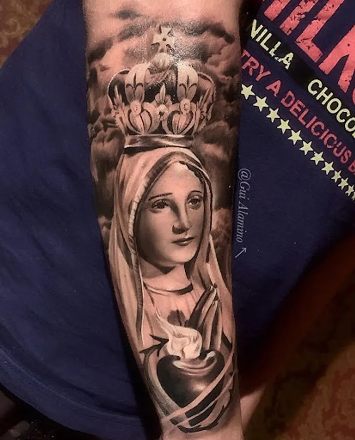 Sacred Heart of Jesus: The Sacred Heart of Jesus is a symbol of Jesus' divine love, compassion, and sacrifice. It represents the burning love that Jesus has for all humanity. This design often features a heart with flames and a crown of thorns. Some people choose to add additional elements like rays of light or the cross to enhance the symbolism.