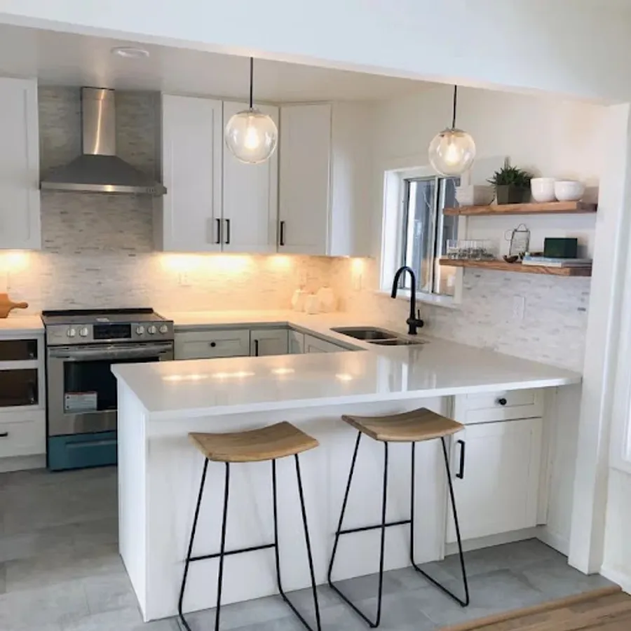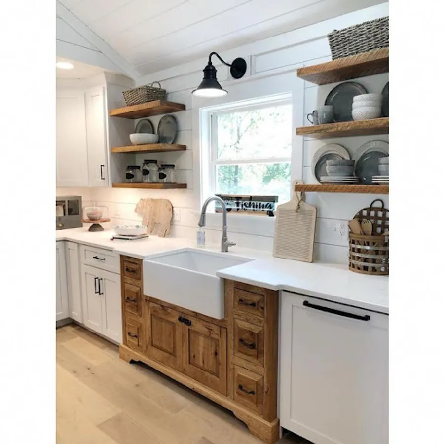 Open shelving: Open shelving is a popular modern design element that can create a sleek and spacious look. Use it to display your favorite dishes, glassware, and other kitchen items.