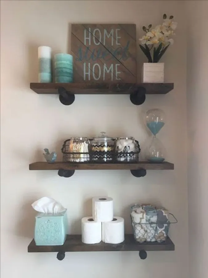 Rustic Wall Decor: Decorate your walls with rustic-inspired artwork, such as landscape paintings, botanical prints, or vintage signs. Install floating shelves made of reclaimed wood and display rustic ceramics, handmade pottery, or vintage kitchen utensils.