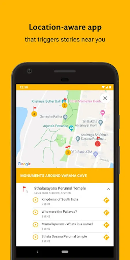 These tours are ‘location-aware’ meaning that the app senses when you have reached a certain point and automatically prompts you with the relevant content. You can choose to play, pause or replay the content at your own convenience. You can also manually select any location on the map and play the associated stories, without even visiting the location.