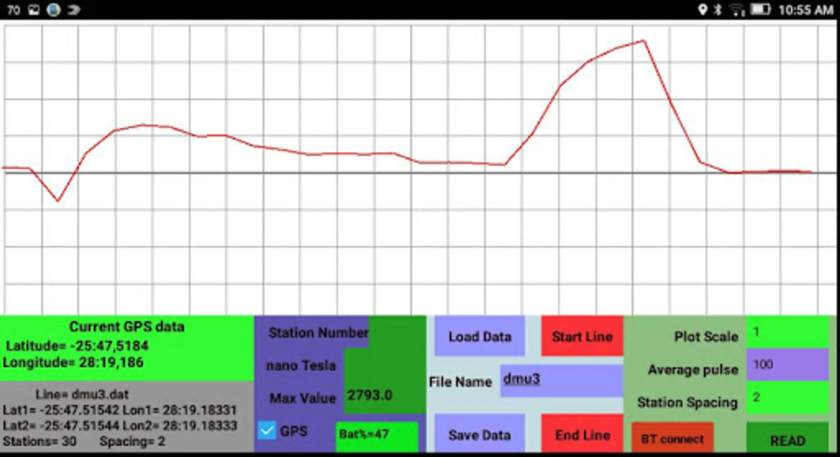 After a new line have been started with the Start Line button, a file name must be entered in the File Name block:- Then press READ to send a command to the DMU data logger to start taking readings.