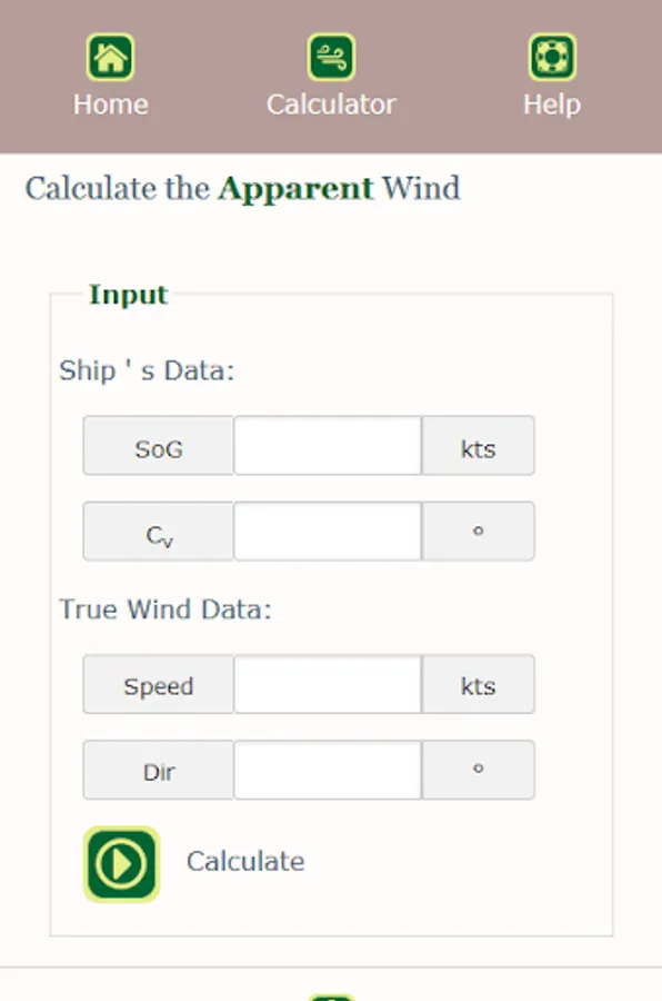 Based on ship's data (heading and speed over ground), this nautical wind calculator returns true and apparent wind (speed and direction). Anemometers on board of a ship often measure apparent wind. This app lets you quickly convert to true wind.