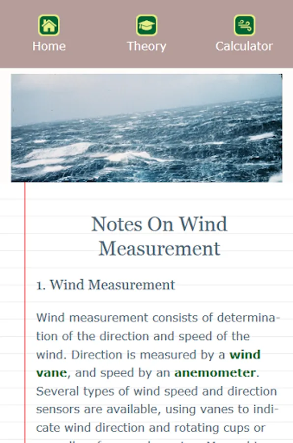 In the theory section, the Beaufort scale of wind force and effects of wind on the sea are explained. This will help you estimating true wind direction and wind speed based on the state of the sea.