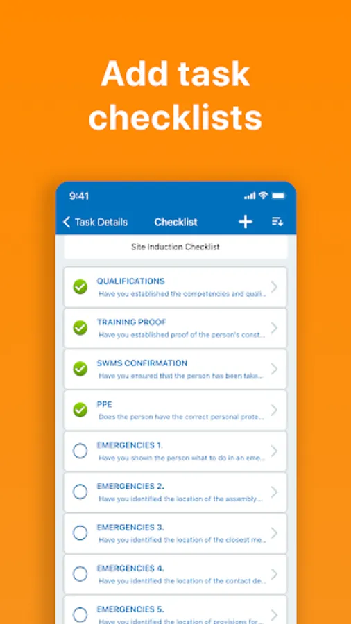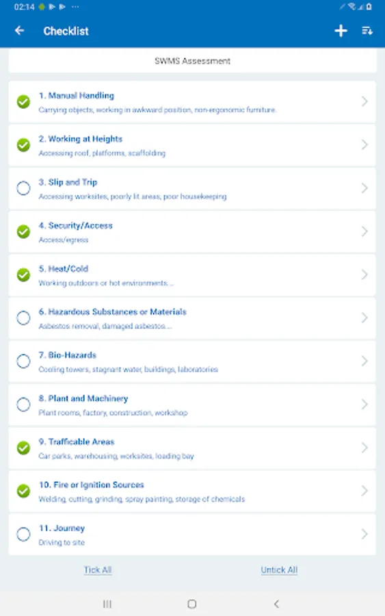 * Checklists can be used for toolbox talks, SWiMS or any Health and Safety