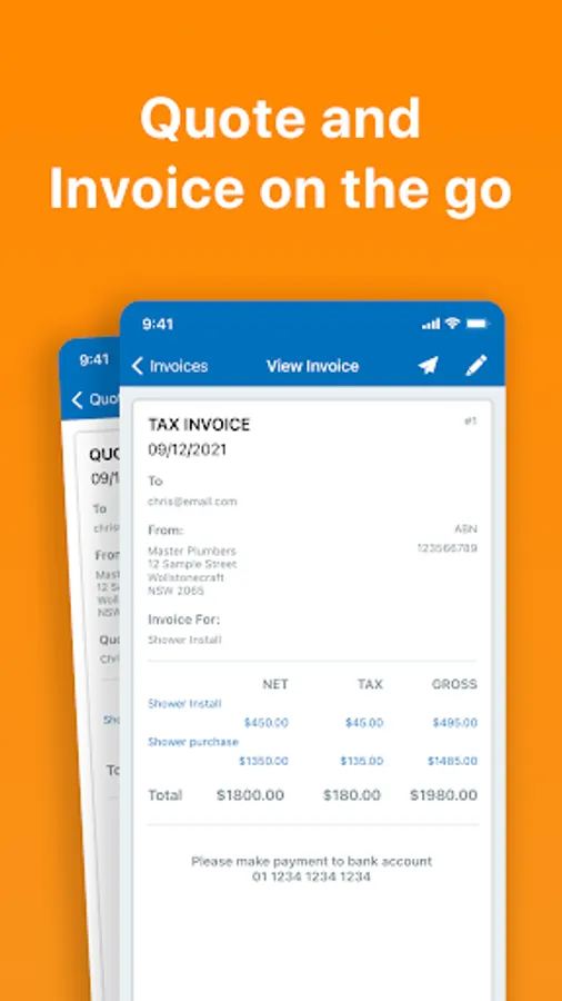 * Generate quick and easy PDF invoices on the spot and email them directly to clients.