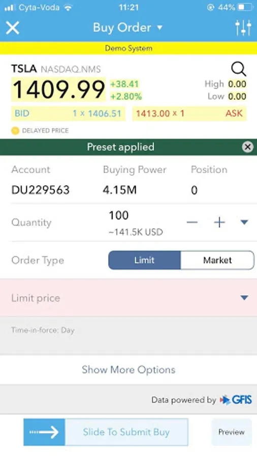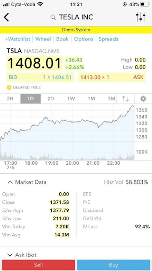 * Delayed market data for non-subscribed tickers and non-IB customers