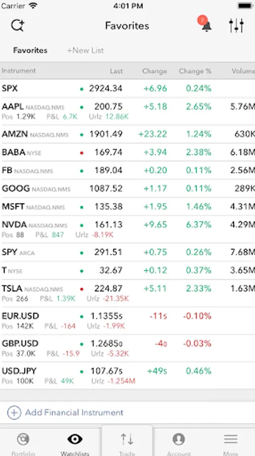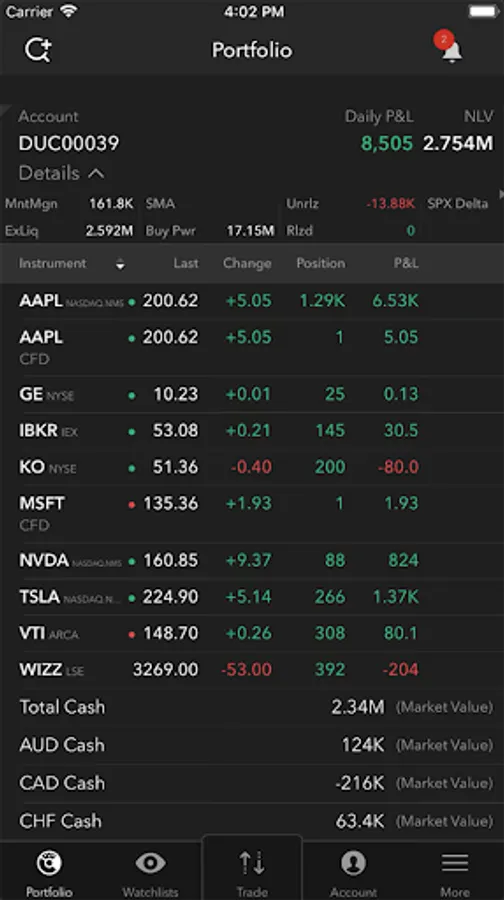 * Monitor your orders, portfolio and current positions in real-time
