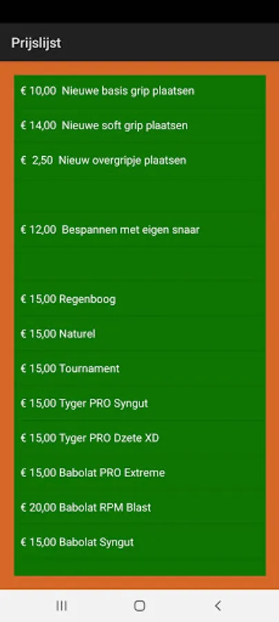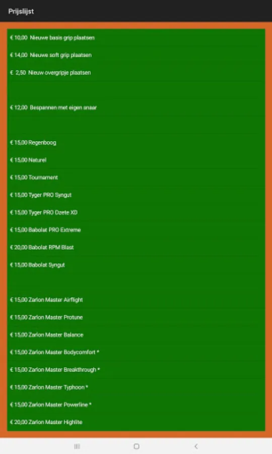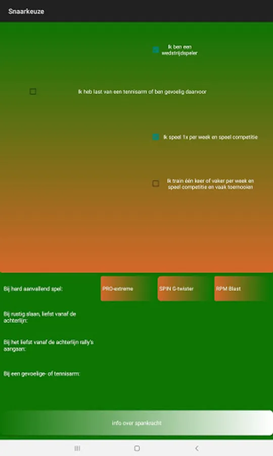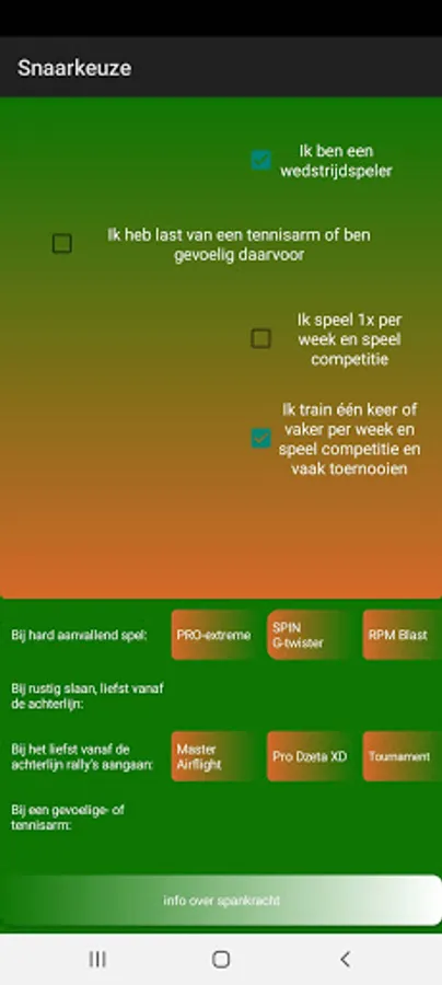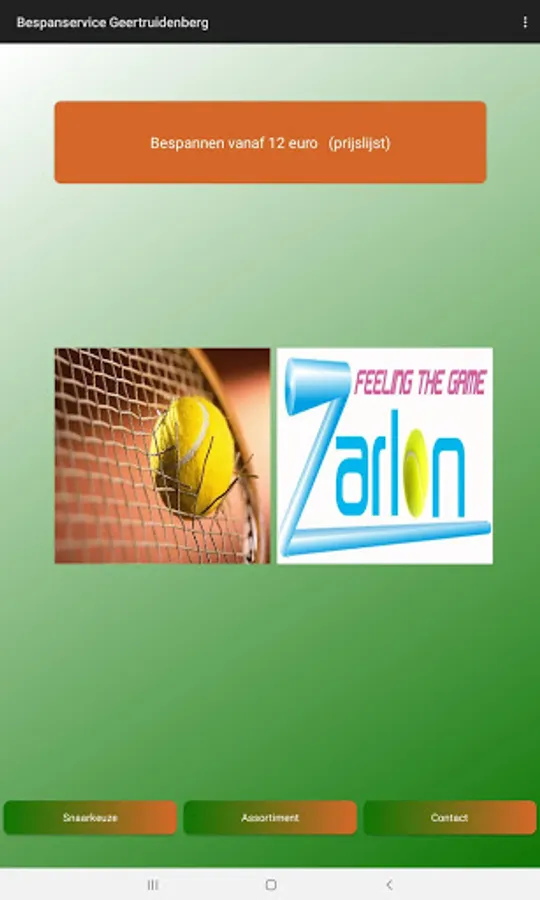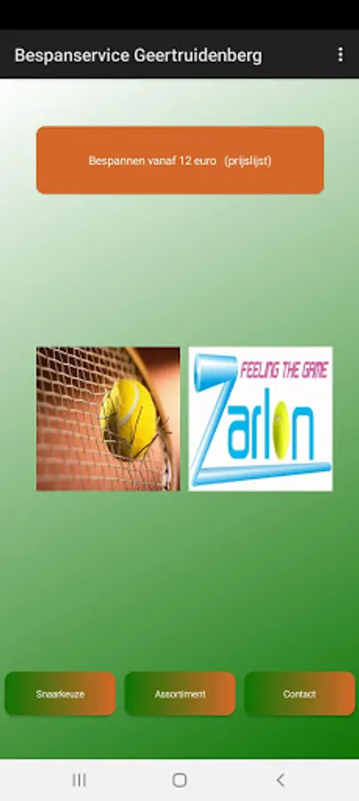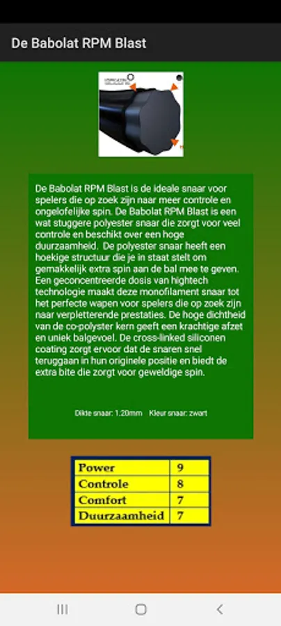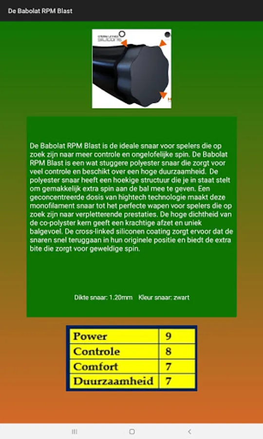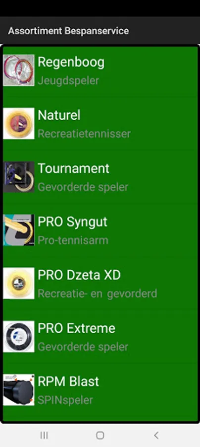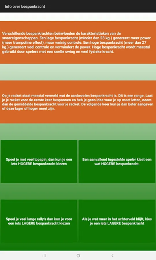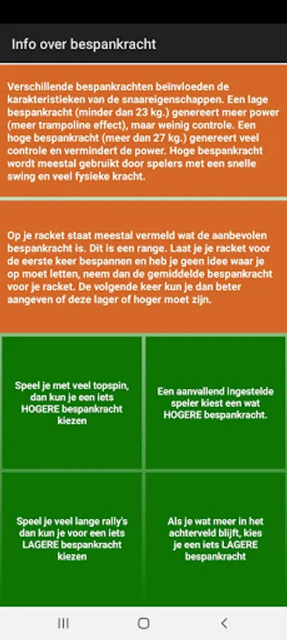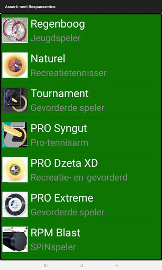 This app is offered to you by bespanservice.net in Geertruidenberg, it is free and without advertising, with a lot of information about the strings used, about various types of grips and about the tension on your strings.