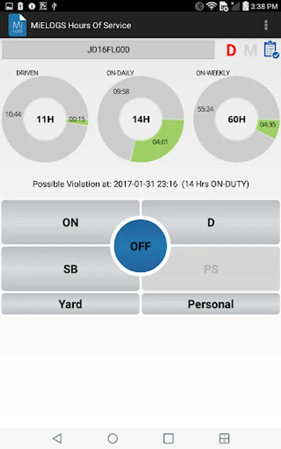 -When the truck is stationary for 5 minutes or more, it will default to on-duty not driving and the driver must enter the proper status