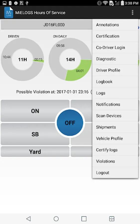 -Mobile device permits duty status changes only when the vehicle is at rest