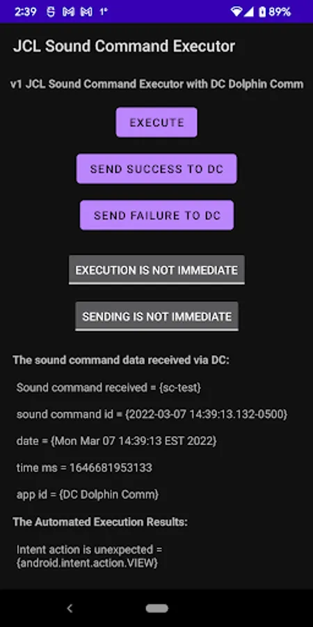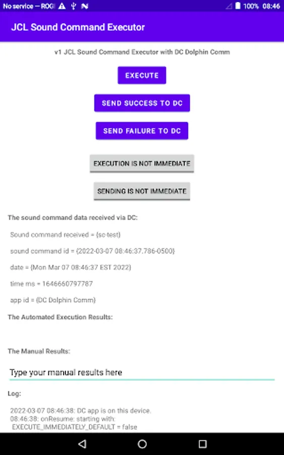 This app can execute specific sound commands emitted by dolphins that are defined by a human user using Android app DC Dolphin Communicator.