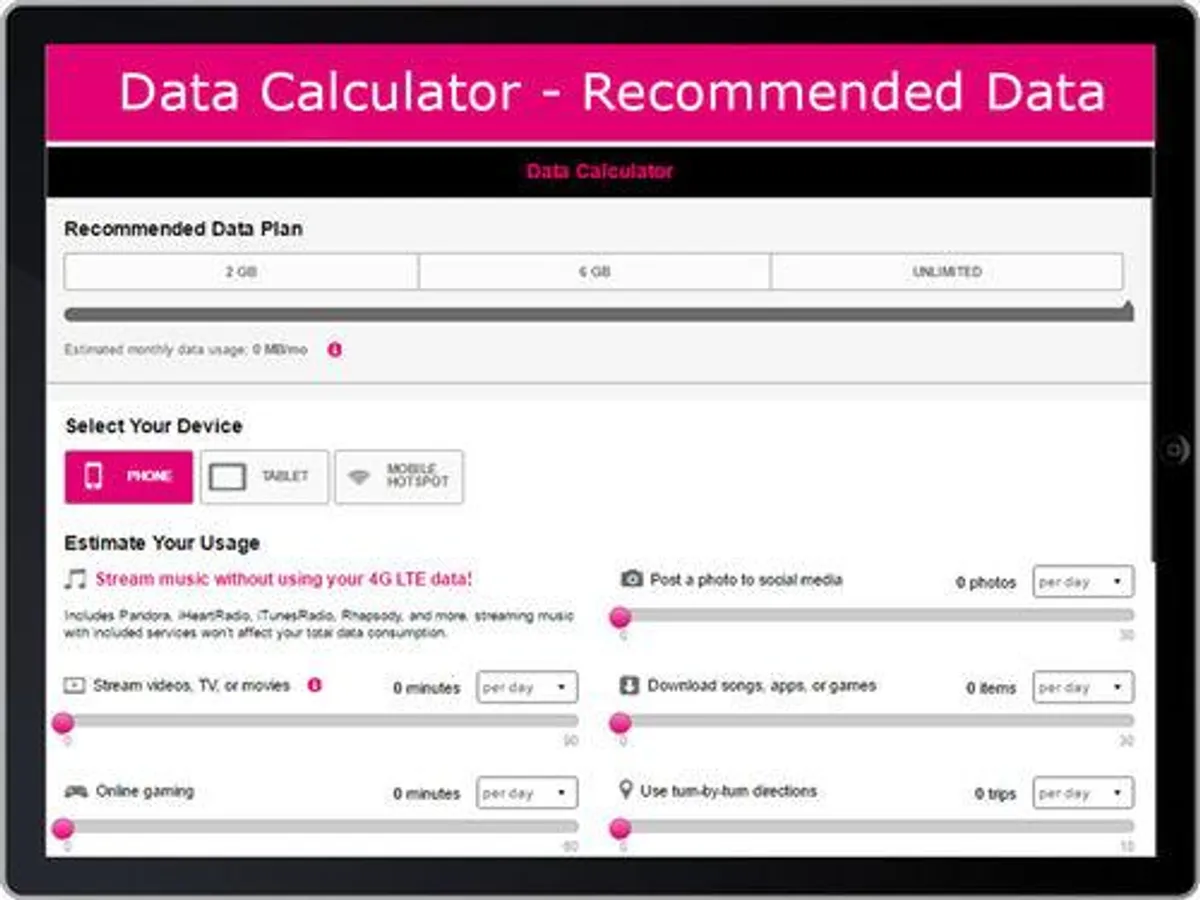 Estimate how much mobile data you'll use, and we'll recommend an data plan or package that's right for you.