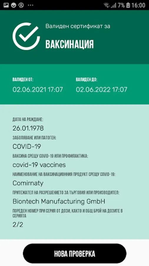 Official application of the Republic of Bulgaria, developed by the Ministry of Health, for verification of the EU digital COVID certificate.