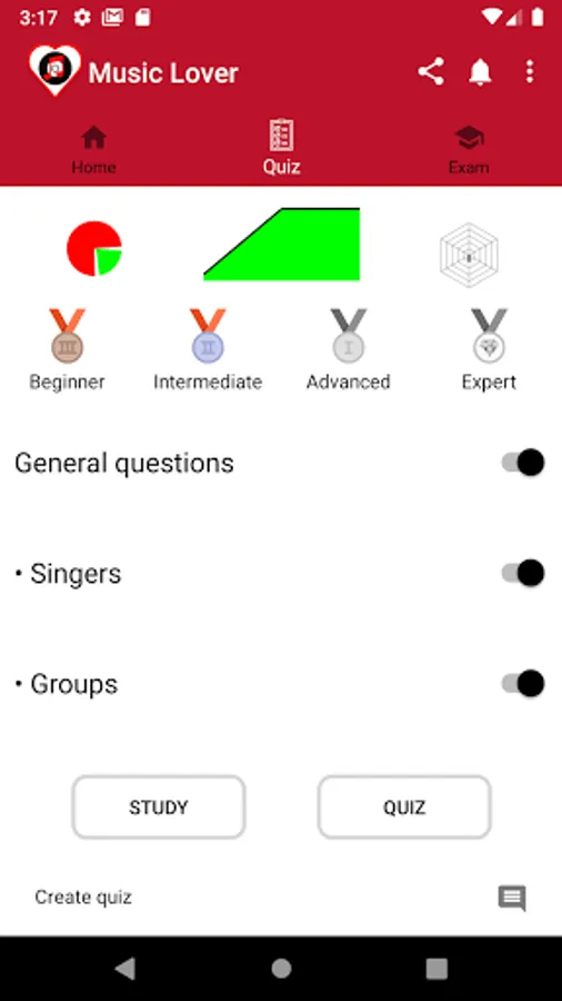 Statistics with graphs that allow you to monitor your progress over time and understand what your strengths are.