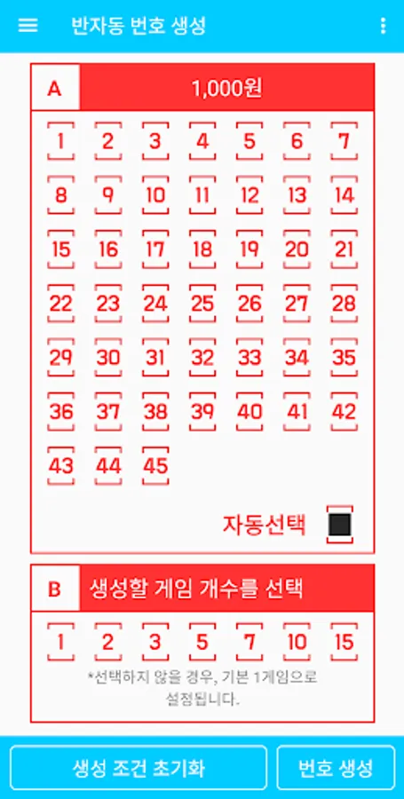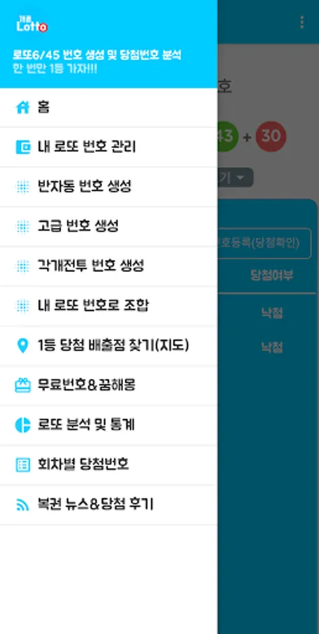 * Semi-automatic (automatic) lotto number generation function is provided, and a guide pop-up function for selecting the next number when selecting a number is provided.