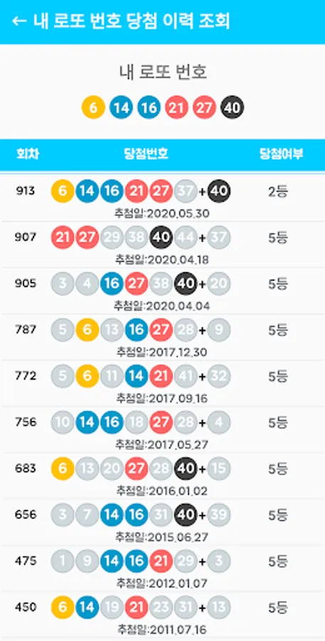The data in this app is provided based on the Korean companion lottery (lotto645).