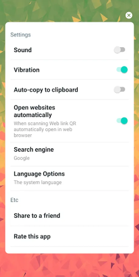 Share arbitrary data such as website links with the built-in QR code generator by displaying them on your screen as a QR code and scanning them with another device.