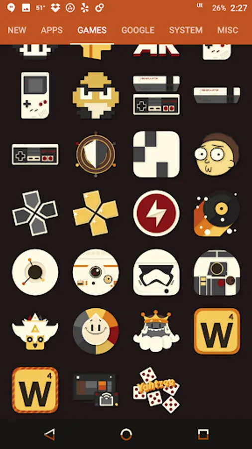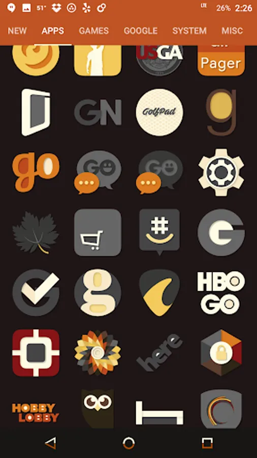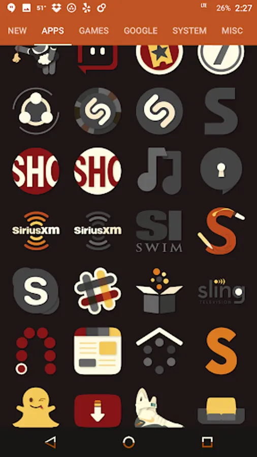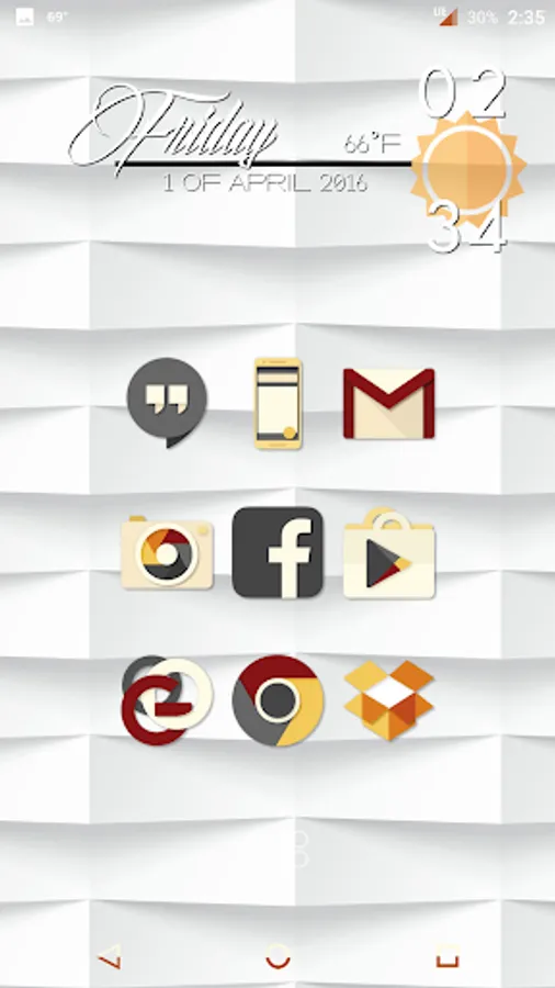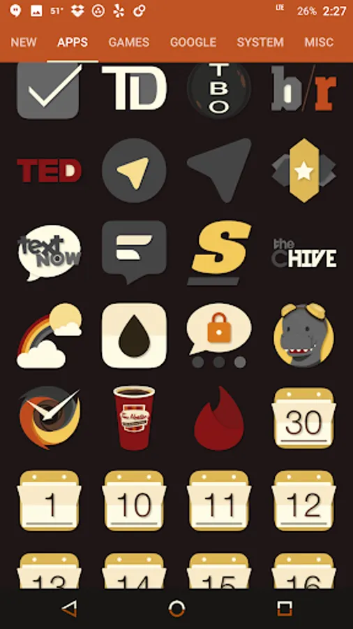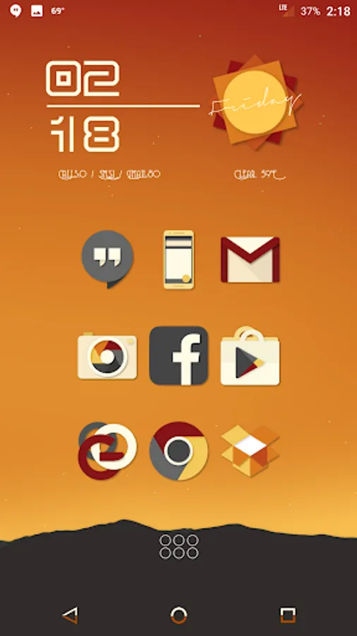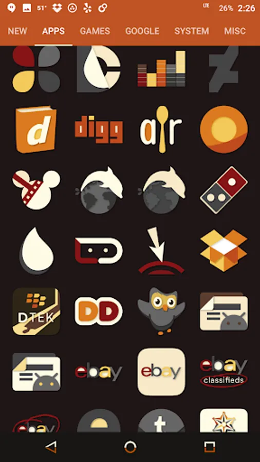 Desaturated colors leaving only red and orange tones with highest quality iconography, hundreds of matching wallpapers included, and full launcher support for all popular launchers!