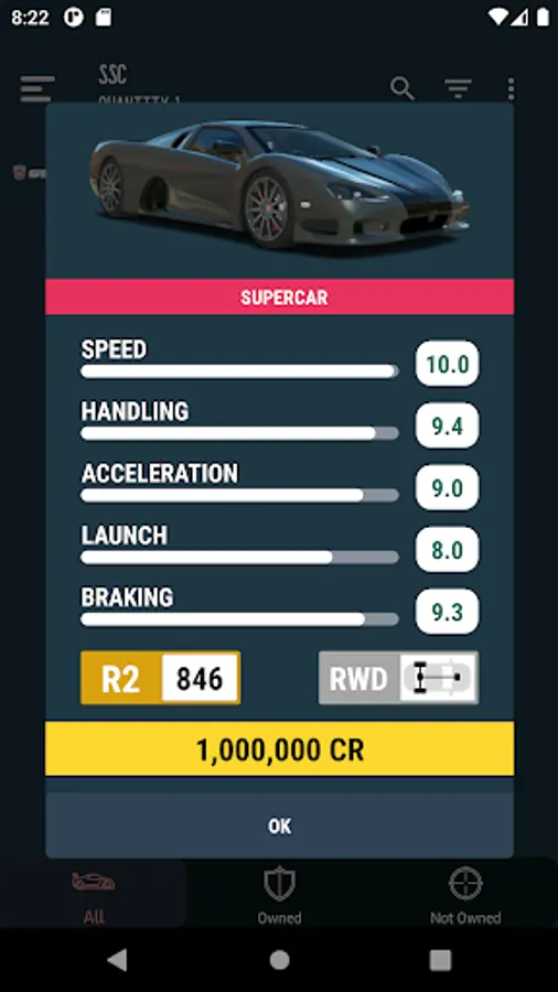 model, car type, unlock type, country, year, favorites.