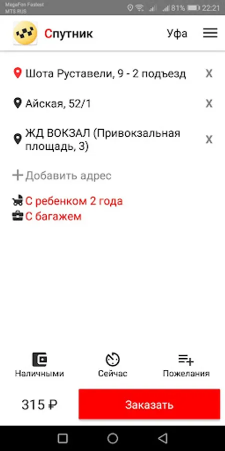 Sputnik - taxi and delivery, Ufa. Round-the-clock, mobile online service for ordering a passenger taxi and Sputnik and delivery in the city of Ufa. Convenient and fast online taxi call Sputnik and delivery to Ufa city. The minimum prices and minimum waiting for a taxi and delivery in Ufa. Sputnik - taxi online.