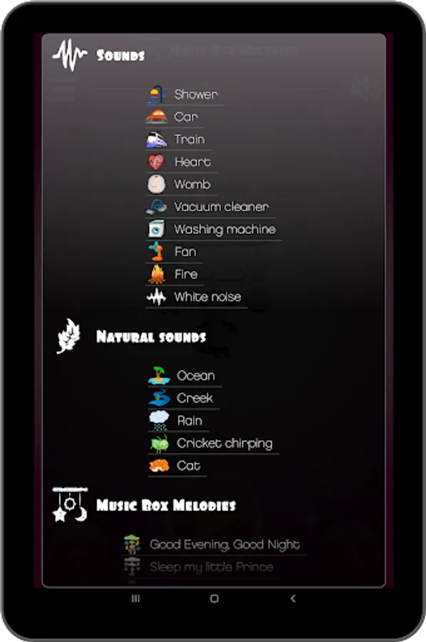 * 24 different sleep sounds (Lullaby, Lullabies)