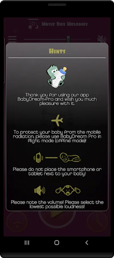 - To protect your baby from mobile phone radiation, please use the app in flight mode (offline mode)!