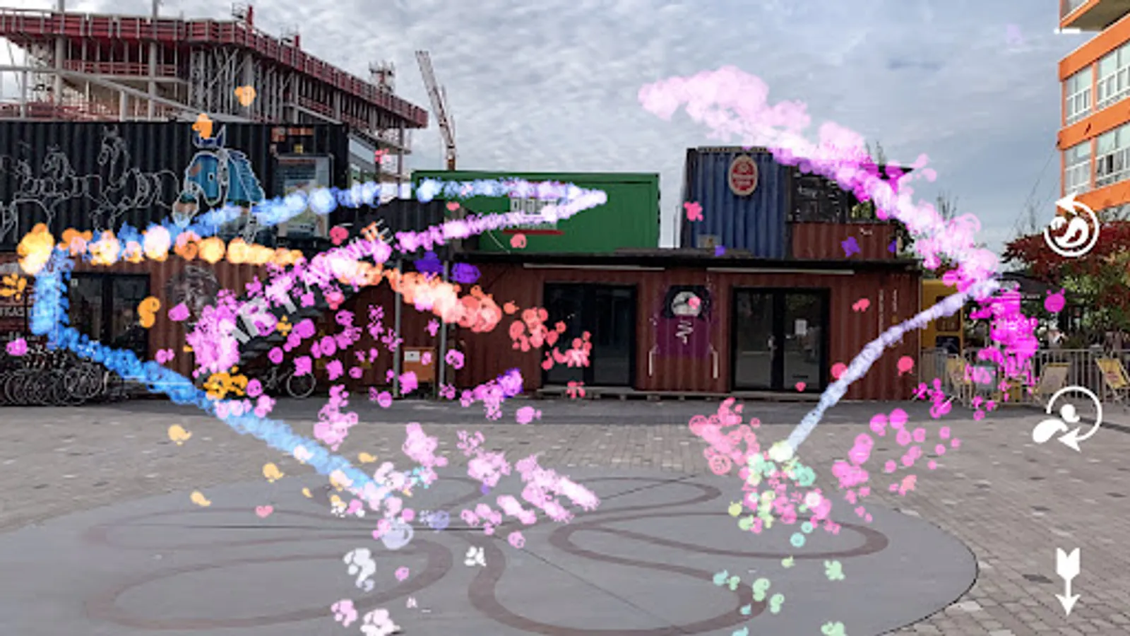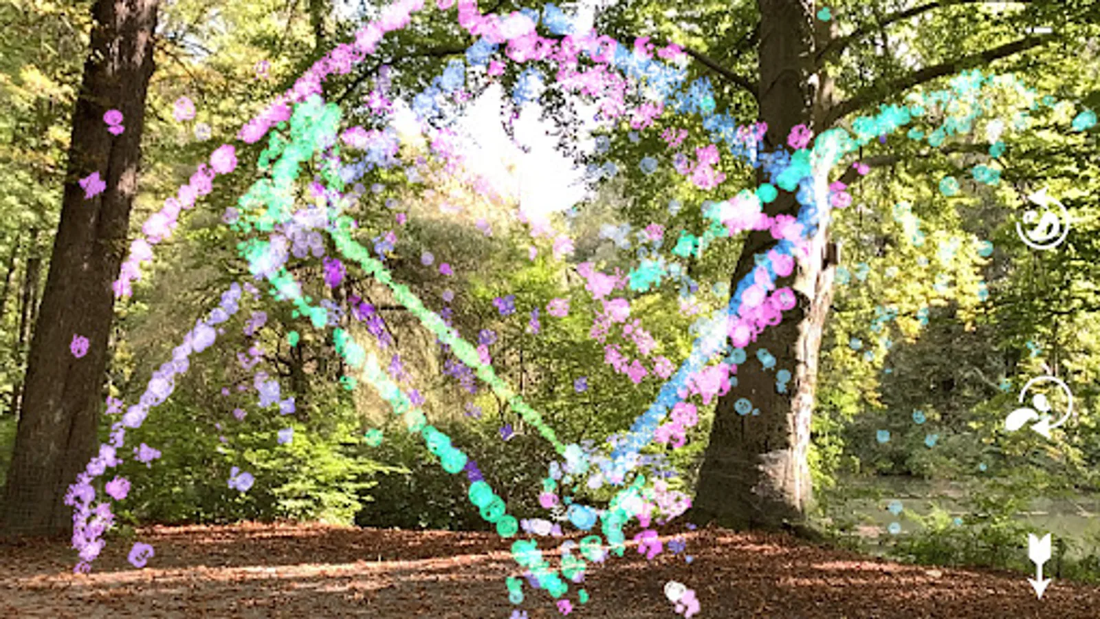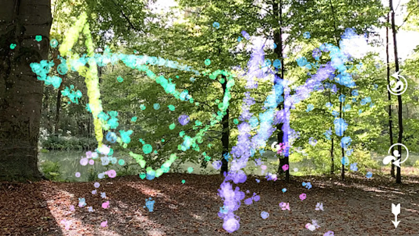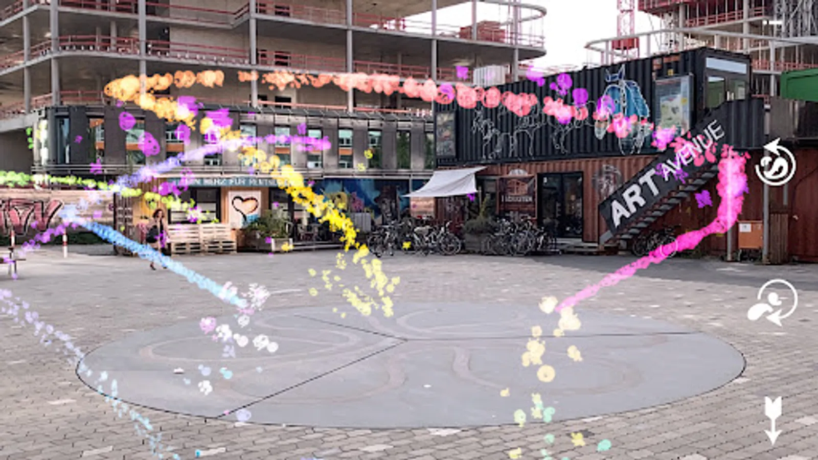 The AR / Public Art project “Kaskade” is an interactive, post-baroque water feature. Particles, flourishes and decorations move across the screen in orderly arabesques and unordered paths. They generate fluid spatial drawings - guided by an invisible course.