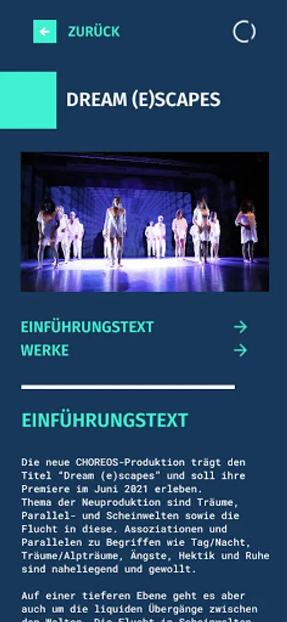 With the production “Dream (e) scapes” the ensemble CHOREOS is breaking new ground. All information about production can be called up at any time via the app.