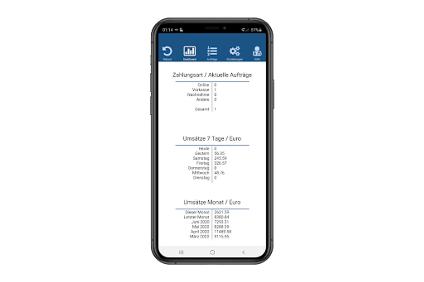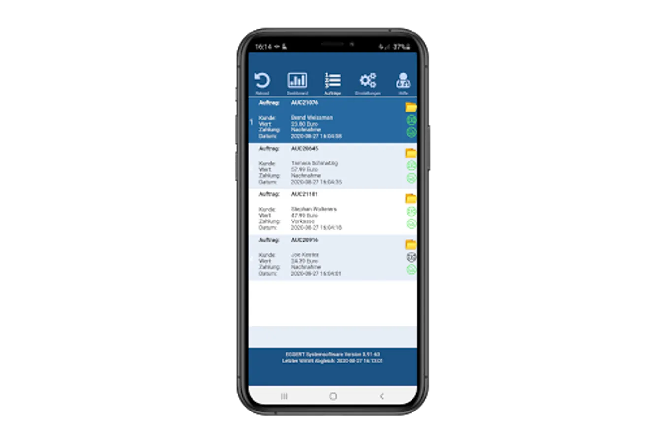 With our "Exporter" tool, you can load the order data from the JTL database and transfer the current orders to your mobile phone. See which orders e.g. are still open, unpaid or have even been sent. With the magnifying glass function, you can even view the orders in detail.