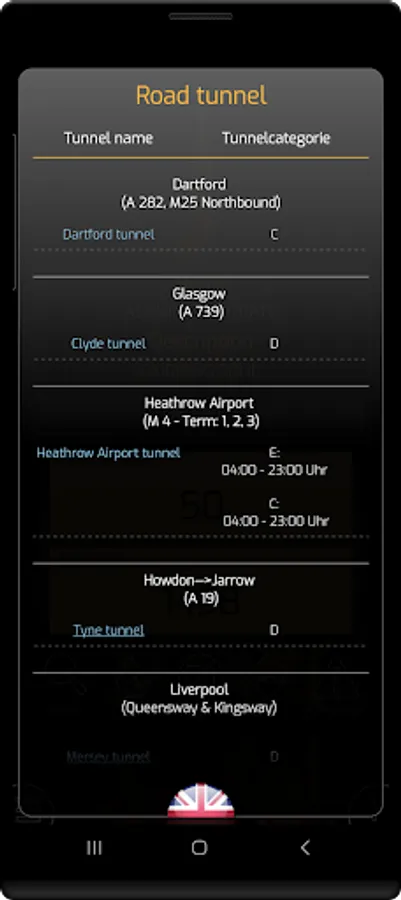 * all European road tunnels with category