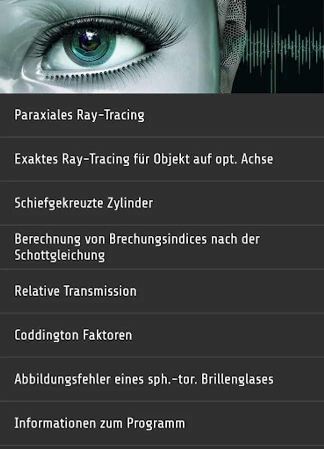The app was developed in the context of a bachelor thesis for the degree program ophthalmic optics and audiology of Aalen University. There it serves the students as a calculation control and is also used as a platform for interactive lectures.