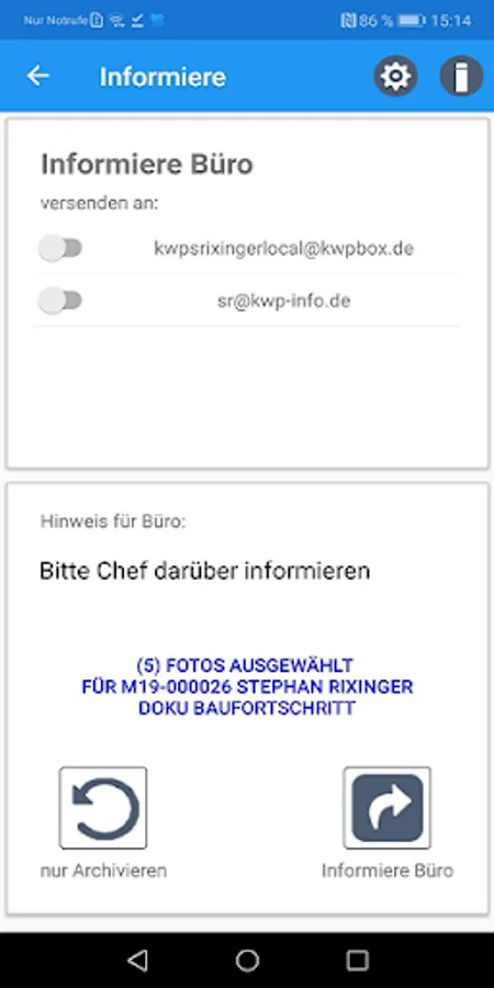 SIMPLE tool of the KWPBOX for the installer's mobile phone, to create image documentation and to automatically archive in the office site-related.