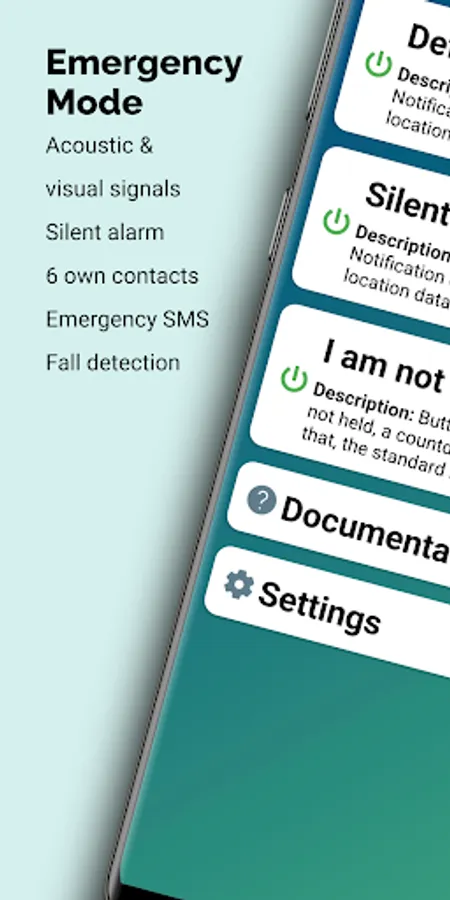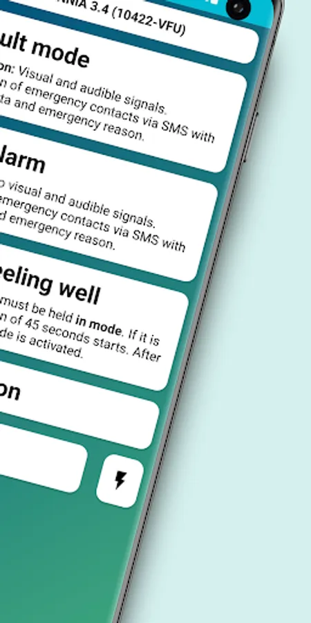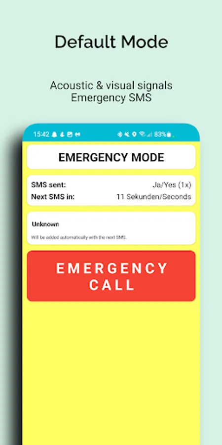 The emergency mode is intended to attract the attention of people in the vicinity to ensure faster assistance. This is done via visual (e.g. flashlight) and acoustic signals. If the battery level is too low, individual functions of the emergency mode are deactivated to save battery power.