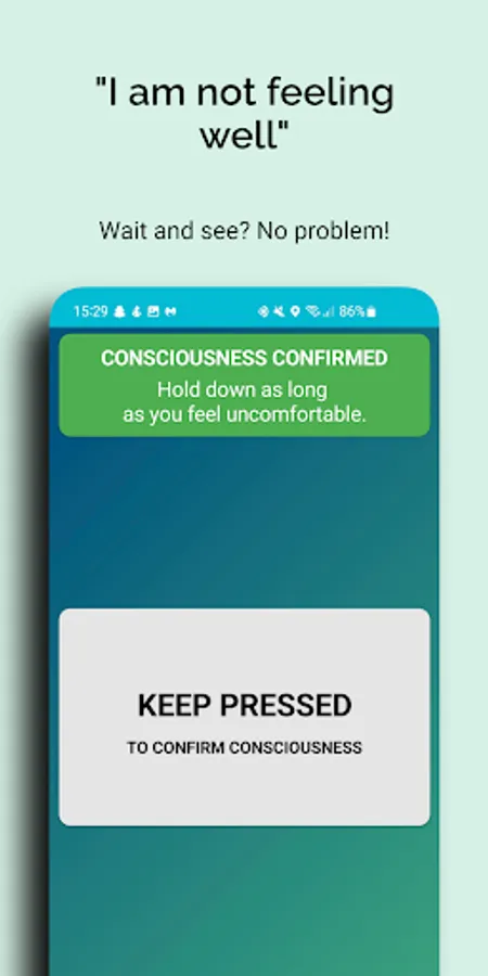 "I'm not feeling well" mode: Button must be held in the mode. If it is not held, a countdown of 45 seconds starts. After that, the standard mode is activated.