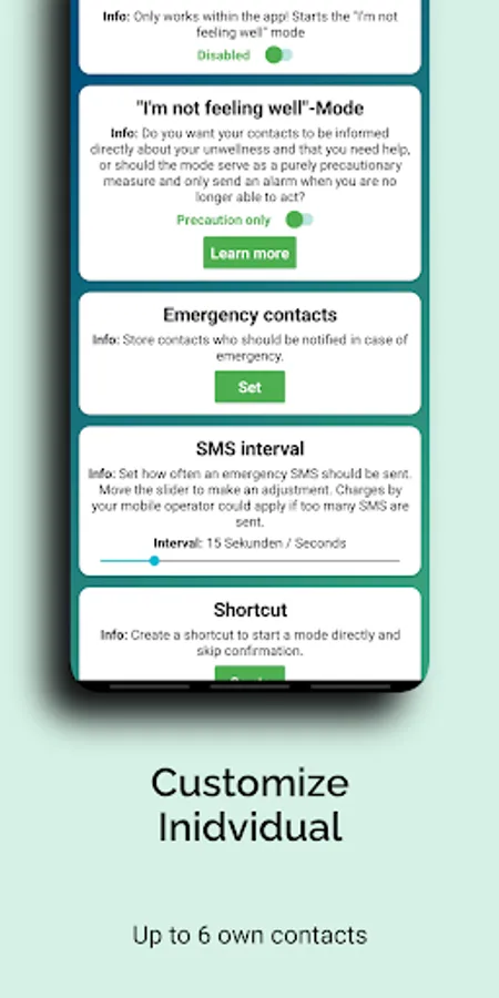 - Up to 6 own emergency contacts